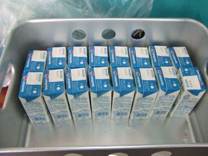 しかし、配膳室に返されてきた、あるクラスの牛乳です。クラス分の半分が飲まれずに返却されています。残食の多さが問題になっています。せっかくバランスよく献立された給食が、意味ありません。また、現在でも国や地域によれば、飢餓に直面しているところもあります。もったいない! ぜひ残さずきれいに食べましょう。