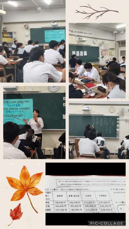 英語の授業からは楽しそうな笑い声あり。内容が深まる笑いは心地よいですね。社会科では、グループごと様々な意見が飛び交っています。国語科は、静かに古典の世界に入っていました。