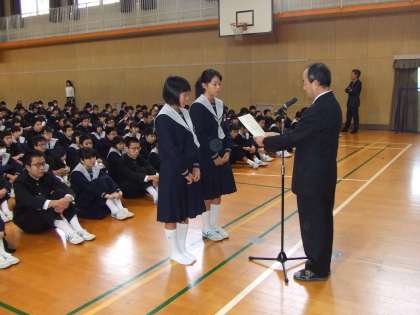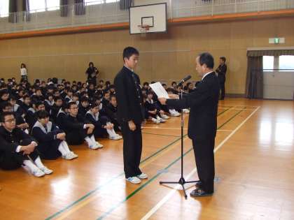 賞状の伝達です。(上・中はソフトテニス部、下は剣道部)