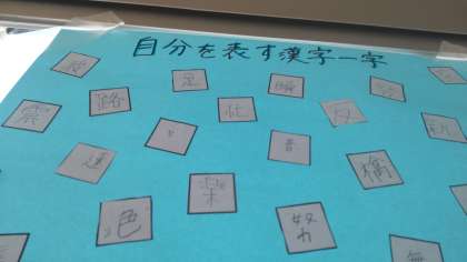 2年生の廊下には、思いのこもった漢字一字が掲示されています。