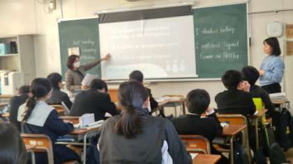友達と英語でじゃんけんをして、会話をしていました。席を移動して、繰り返し英語で会話をしました。