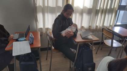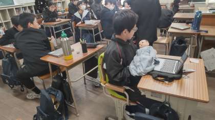 等身大の赤ちゃん人形を抱っこする体験もしました。