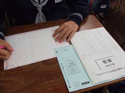 上の写真は、2年生、中と下は1年生です。一生懸命解答に取り組んでいます。