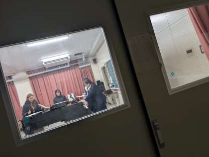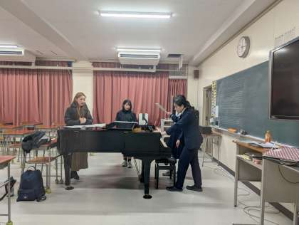 放課後の校舎から美しいハーモニーが聞こえてきます。顧問の先生も一緒に歌っていました。ステキな時間が流れています。