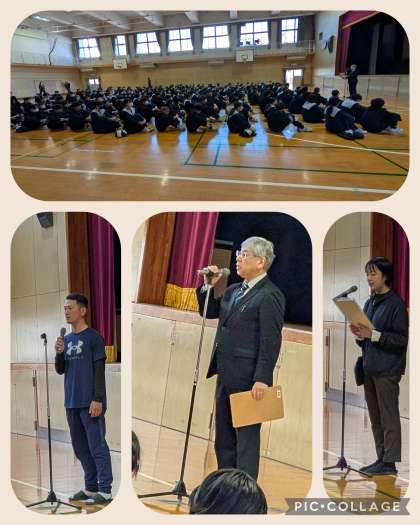 春休み中、交通安全やSNSのトラブルに巻き込まれないように、正しい行いをしよう。何かあれば家の人に連絡をとるように。部活に勉強に頑張ろう。