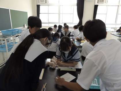 3年生理科では、イオンについて学習しています。実験を連日行っており、今日は金属の反応の差について実験しました。実際に見ながら、金属の特性について学習しました。