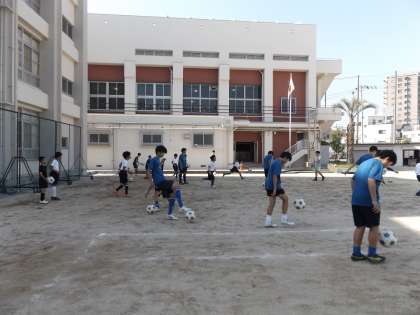 本日は、リフティングやパスの基本練習後、少人数に分かれてゲームをしました。その様子を部活動指導員さんが観察しながら生徒たちに助言をしていました。