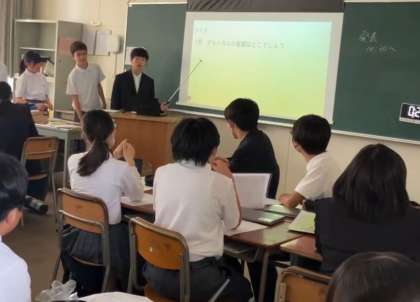 1年生では、関西万博で訪れたパビリオンを中心に、関係のある国や文化について各グループで調べたものをプレゼンテーション資料にまとめて、発表しました。細かく調べたものを発表したり、写真で表現したり、クイズにしたりと各グループが発表を工夫していました。