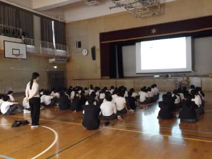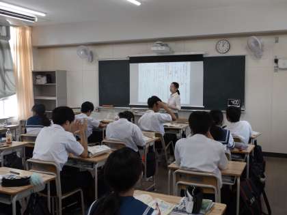 2年生では、4限目に数学・英語・国語の授業でした。数学では、1次関数の変化の割合について、出された課題をお互いに教え合ったり、一人で考えたりして取り組んでいました。英語は、進出単語の学習と英語本文の意味について考えました。国語では、助動詞の文法について取り組んでいました。