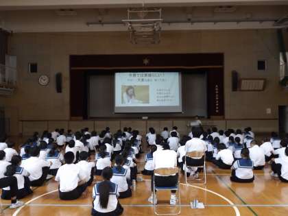 助産師の山下さんを招いて、3年生を対象に性教育を行いました。