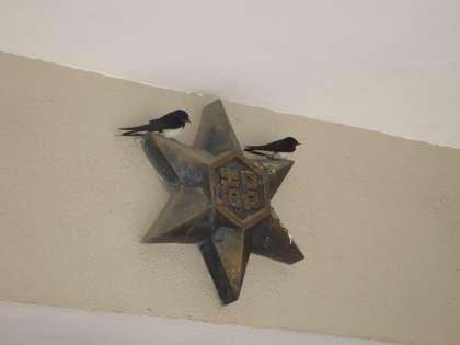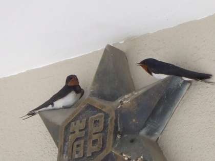 5月16日(月)の朝です。先週くらいからツバメが飛んできています。玄関の正面出入り口の上のある校章に止まり、巣を作ろうとしているのでしょうか。ツバメの巣作りは、縁起が良いといわれています。都島中学校がさらに良い学校になるように、ツバメも応援してくれているのでしょうか。久しくツバメを見なくなっていましたが、都会のど真ん中に戻ってきてくれているのは、うれしい気持ちになります。このまま、巣作りをして、子どもを育て、巣立ってくれたらと願います。皆さん、驚かさないよう、そっと見守ってくださいね。