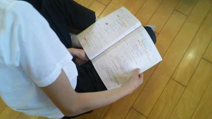 5月20(金)格技室で3年生が修学旅行に向けて事前指導、しおりでの行程の確認を行っています。