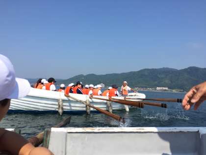 今、カッターレースがスタートしました。各艇、一進一退の攻防が続いています。