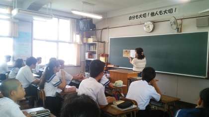 生徒は静かにボランティアの皆様の読み語りを真剣に聴いています。