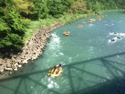 無事、遊湧自然観に到着し、ラフティングが開始しました。水しぶきを浴びながら大自然の中をボートは進んでいきます。貴重な体験、忘れられない思い出になりそうです。