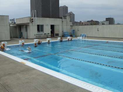 プールでは、水泳の補習をしています。泳げるようになったかな?