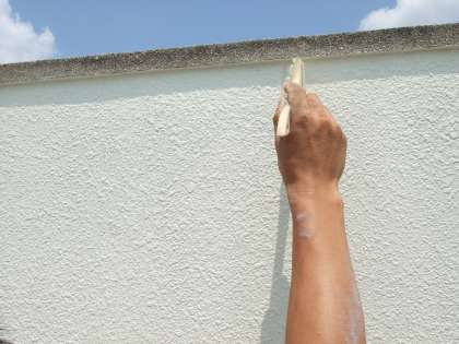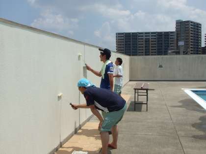 プール壁面塗装作業中
