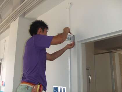 10月4日(火)、午前10時25分発見。南館2階に男子トイレの表示板です。背の高い人が持ち上げたのでしょうか。取り付けてある部分のねじが、外れていました。壊そうとしたのではないと思いますが、きっと、軽くしただけなのでしょうが、写真のようになっていました。すぐに、管理作業員さんが修理・修復してくださいました。仕事が早い! 当事者はそうなったことは分かっているはずです。やってしまったことは仕方ないこととして、近くの先生にすぐ、報告してほしかったな〜。