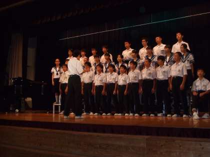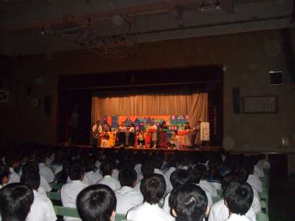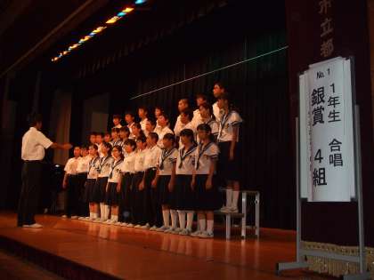 たくさんの保護者の方々にお越しいただきました。それぞれの発表、素晴らしいものばかりです。緊張した1年生の合唱、2年生の劇では歌・合唱・ダンスに素晴らしい演技でした。音楽部の合唱は、さすが府で金賞を獲得したことだけあって、見事なハーモニーでしたね。2年生ソーラン節は迫力がありよくそろっていました。おなじく2年生のメイキングビデオは劇・ソーラン節の準備練習の時の様子がよくわかり、みな頑張って作り上げた過程が紹介できていました。英語部の発表は、興味を引く埴輪を壊したのは誰かを推理する内容で、雰囲気からすれば犯人は、H先生か!? 1年生の全体合唱も聞きごたえありましたね。