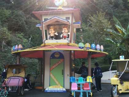 3年生遠足の楽しいひと時です。お弁当の後は、こんな乗り物にも乗りました!