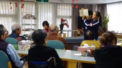 11月10日(木)、1日目です。桜の宮苑で、ご高齢の方とコミュニケーションをとっています。うまくできたでしょうか。