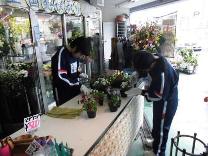 11月11日(金)、2日目です。消防署で放水を体験しています。かごの屋では食材の準備、下ごしらえでしょうか。花工房 風香では花の世話をしています。