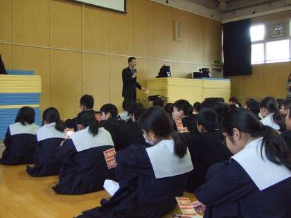 11月25日(金)の5限です。格技室で、都島中学校の歯科校医の澤田先生から虫歯の話を中心にいろいろ教えていただきました。大事な歯の話です。聞いた話をそれぞれのお家でも話題にして、歯の健康に気をつけるようにしましょう。