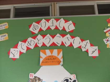 保健室前の掲示板です。保健室の龍田先生の力作です。1月10日の始業式の日にはぜひ、見てくださいね。