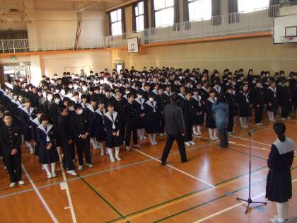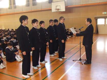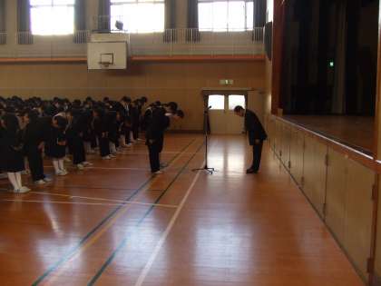 開式までにきちんと集合している、生徒たちです。チャイムが鳴るまで、誰一人しゃべることなく待っています。昨日の二十歳の集いでも、中学校の時の習慣がついていて、同じでした。また、「あいさつとそうじ」も受け継がれています。あと、5・6・7年後には今の中学生も二十歳の集いで、戻ってきてください。かなり先のように思いますが、早く月日は経ちます。そして正月気分は一掃して、現実に戻り、3年生はいよいよ受験に突入します。3年生は明日、明後日実力テスト、1・2年生も明後日にはチャレンジテストがあります。点数は少ないより多い方が良いのは当たり前ですが、どれだけ努力して頑張ったかがもっと大切なように思います。現実の戻り勉強しましょう。