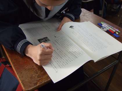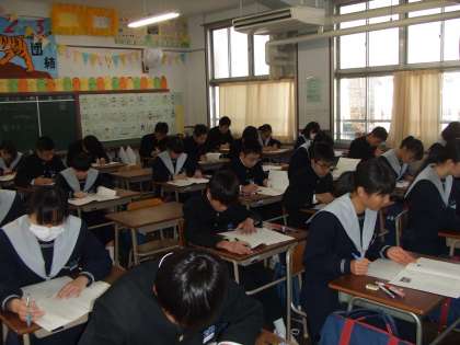 写真は2年生の様子です。2年生の今日のテストは5教科です。1限の国語に取り掛かっています。