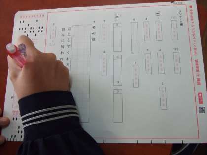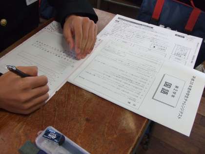 1年生は国数英3教科でのテストです。写真は1限の国語です。緊張した面持ちで鉛筆を走らせています。