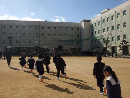 住友先生のお話の後、地震が発生し、津波が来たとの想定のもと、体育館から校舎4階への避難訓練を実施しました。
