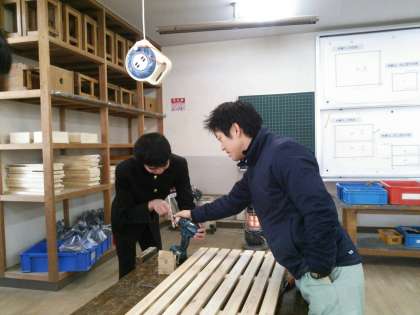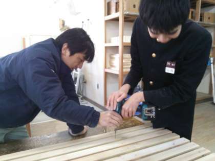 1月17日(火)2限目、ニーズルームの生徒が技術室で「すのこ」を作っています。管理作業員さんに手伝っていただき、ドリルをうまく使って、ていねいに上手に作っています。今、作っている「すのこ」は新入生を迎えるための物です。4月が、春が待ち遠しいですね。