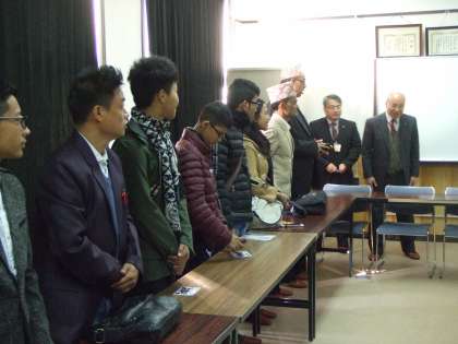 2月6日(月)会議室で徳田校長先生の挨拶があり、自己紹介している様子です。
