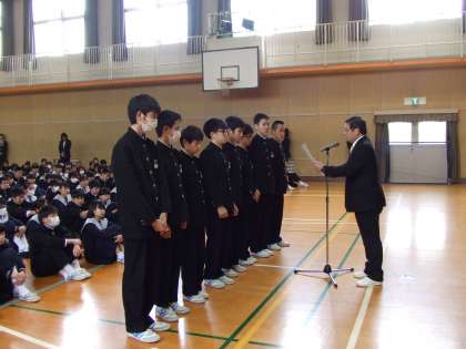 平成29年3月29日 卓球部2ブロック交流大会 団体戦優勝 個人戦準優勝 3位の表彰の伝達を行いました。卓球部の皆さん、おめでとう!!