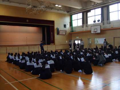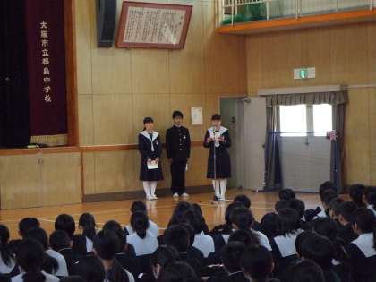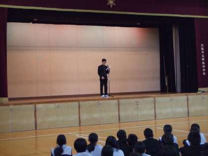 司会進行は、生徒会の人たちが行いました。上級生も、そして、教職員も全員が取り組む『部活動紹介』です。