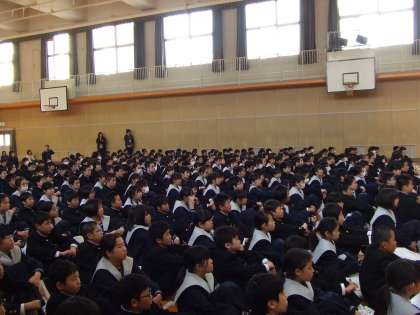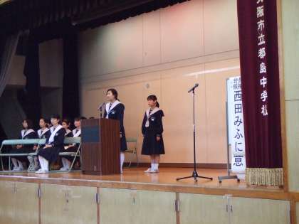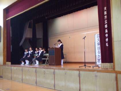 演説を聞いている生徒たちも真剣です。応援演説の様子です。