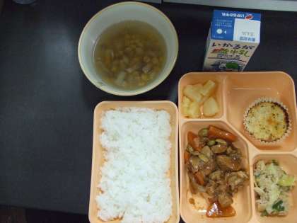 今年度より、学校給食は一旦、お弁当との選択制になりました。デリバリー給食を食べる人は、事前に申し込んだ人です。本校では、4月17日(月)より、給食が始まりました。本日は、鶏肉のケッチャップ煮、カップグラタン、ツナとキャベツのソテー、パインアップル缶詰、スープでした。