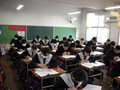 今日は、全国の中学校3年生が全国学力学習状況調査を受験しています。日頃の力がでるように、みんな一生懸命問題用紙に向かっています。