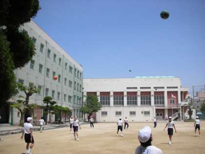 今日は、とても良い天気です。グラウンドでは、体育の授業が行われています。男子はボールを使ったトレーニングをしています。2人がペアを組み、バスケットボールを股の下から一気にななめ上方に投げ上げます。足腰をうまく使って、投げ上げます。相方はボールを受け取るとすぐに、同じようにしてボールを投げ上げます。これを繰り返すのです。まさに、全身運動です。みんな自分の可能性を求めてボールを投げ上げているかのようでした。