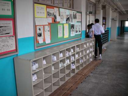 図書室前の下駄箱です。きちんと靴が収納されています。気持ちがいいですね。