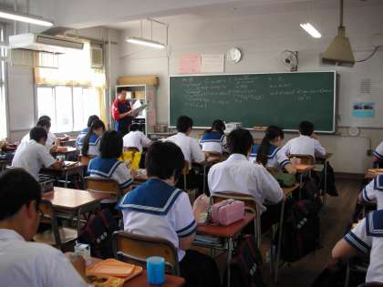 お昼ご飯を食べているときの様子です。給食の人あり、お弁当の人あり、パンの人あり。それぞれのお昼ご飯を食べています。
