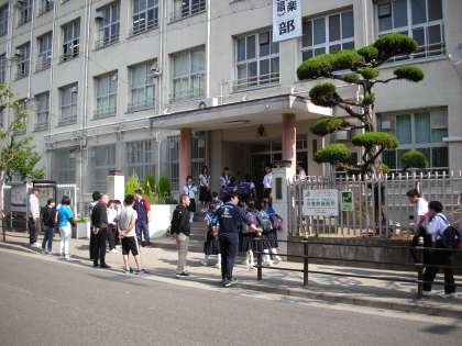 今日も良い天気です。生徒の皆さんは、今日も「おはようございます!」と、元気な声であいさつしています。さわやかな登校の時間です。