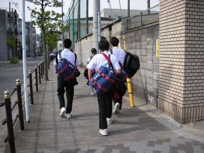 今日の登校の景色は日ごろと大きく異なっています。3年生が明日からの修学旅行に備えて、準備物(大きなカバン)をもって、登校しているのです。3年生は、「重い!」と言いながらも、うれしそうな顔をしています。
