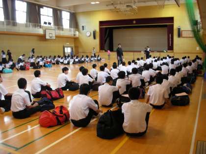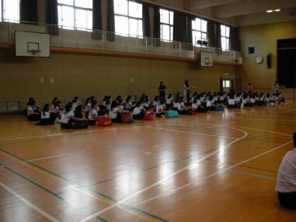 5時限目に、3年生は体育館で修学旅行の取組を行いました。