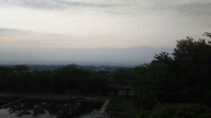 皆様、おはようございます。修学旅行二日目の朝を迎えました。伊那市の朝です。南アルプスの山々の稜線がくっきりと見えます。今日もまた、良いお天気になりそうです。午前中は各農家での体験学習を行い、お昼に伊那市役所に集合することになっています。午後からはアルプス平での雪遊びの後、ホテル・シェラリゾート白馬へと向かいます。本日も適宜報告メールを送信しますので、よろしくお願いいたします。なお、現地からの直接のメールですので、画像が小さいものになっています。