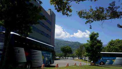 各農家での民泊。素晴らしい思い出になりました。そして、修学旅行2日目。信州には透き通るような青空が広がっています。11:30頃、各ご家庭から民泊を終えて伊那市役所に戻ってきています。爽やかな高原の風が吹いています。