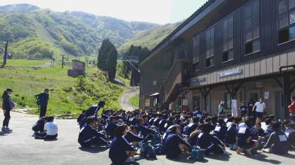 予定通り、五竜とおみのゴンドラ駅に到着しました。今からゴンドラで左上方の山へ登ります。快晴、爽やかな高原の風を受けてゴンドラは進んでいきます。