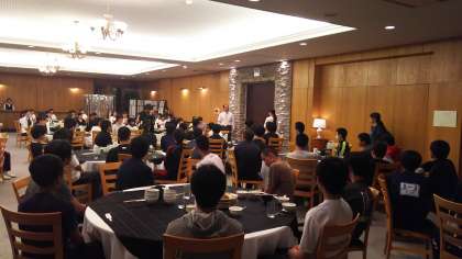 夕食後に、入館式を行いました。本当は夕食前に行う予定でしたが、生徒がみんなお腹をすかしているようなので、急きょ夕食を先にとることにしました。入館式では、全員が「お願いします」と大きな声で、あいさつしました。