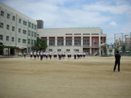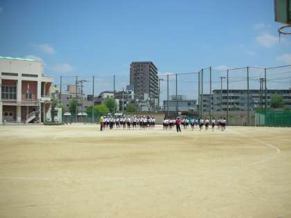 体育大会の備え、体育の授業では練習が佳境に入ってきました。3年生の集団行動では、次第に音楽と動きがあってきました。